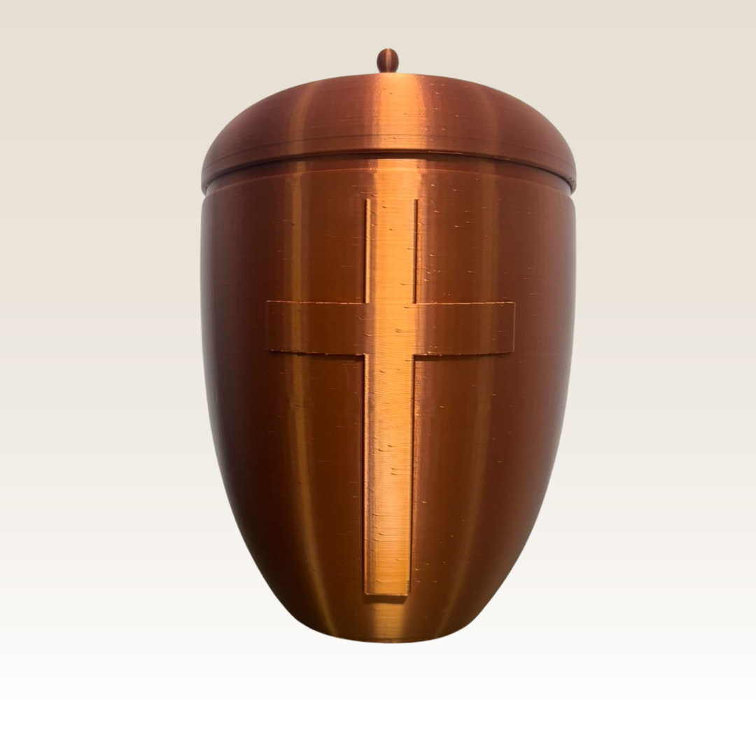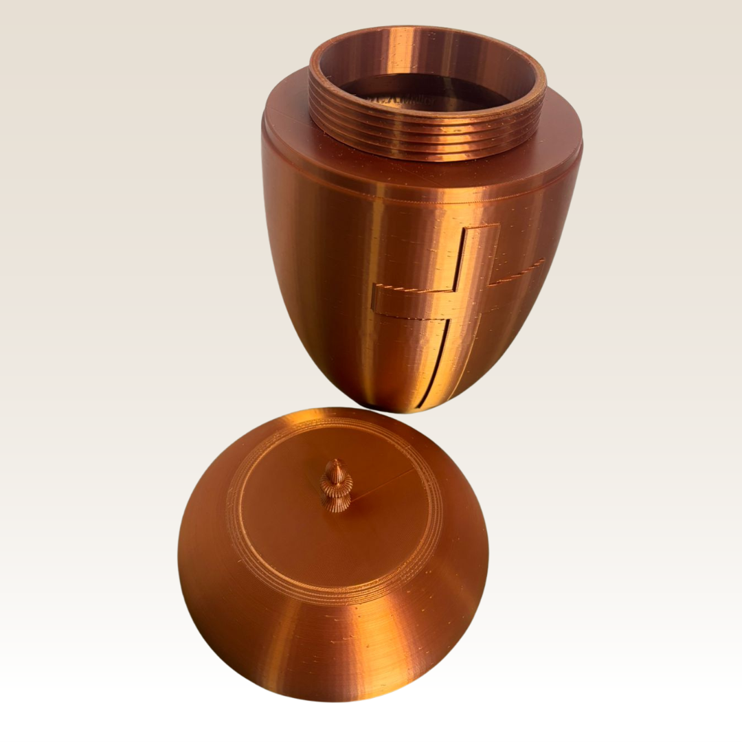 Desenvolvida para guardar e proteger as cinzas do ente querido, esta urna oferece uma forma respeitosa e elegante de homenagear e preservar a memória, mantendo uma conexão próxima, e decorando o ambiente de sua casa.